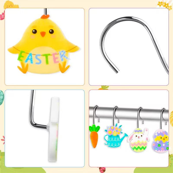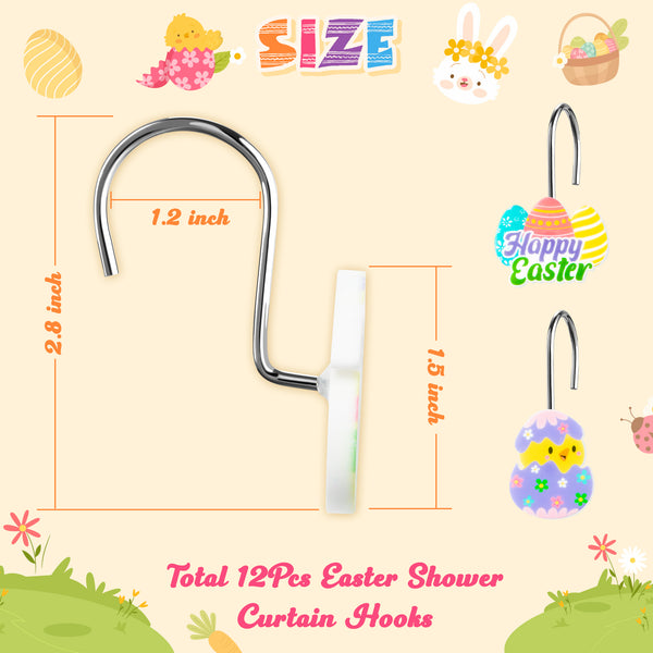 MALLMALL6 12Pcs Easter Shower Curtain Hooks Add appeal to your bathroom and let you enjoy bath time to the fullest; cute and vivid patterns can add a touch of Easter and holiday atmosphere to your bathroom.