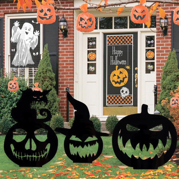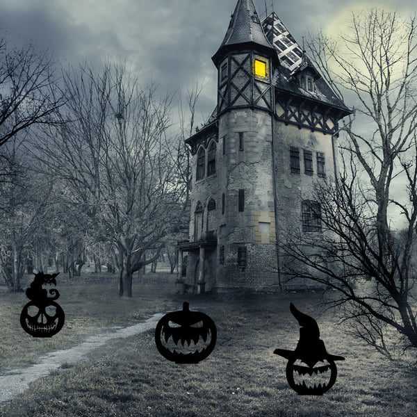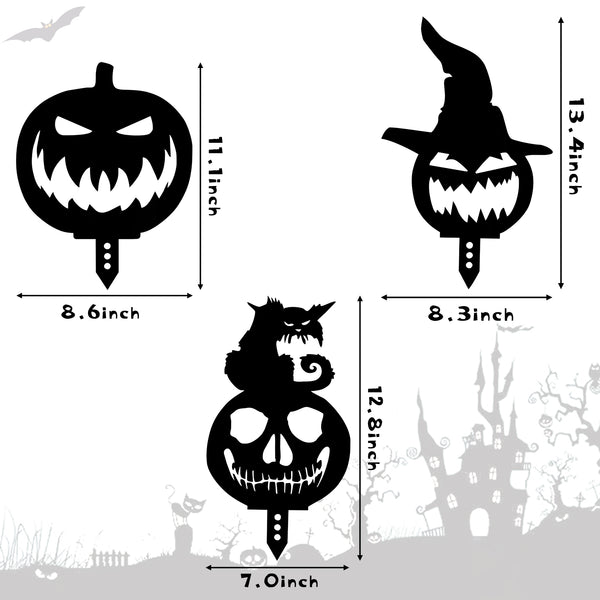 [Scratch Proof] You could get 3 pieces different sizes Halloween themed garden decorations.Please remember to tear plastic film cover off before using although it protect our 3pcs cute addition to the garden decorations from scratches but using experience slightly worse. Please pay attention that the attached board is not the commodity, only to prevent collision!
