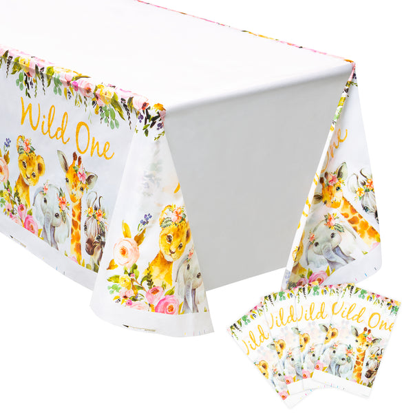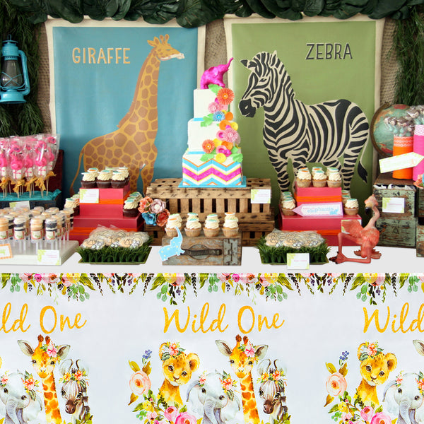 Floral unique design - The wild one table cover is designed with elephant, giraffe, lion and zebra, which makes the party arouse the interest of kids and feel like being got in a fresh jungle atmosphere fulfilled flowers. With such fresh colors and patterns will make your party dazzling and kids will leave the impressive memory of it.
