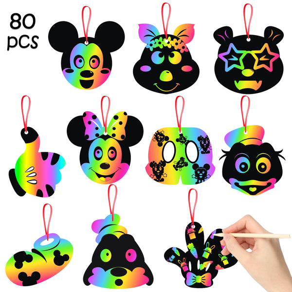 Party Favor: Ideal gift for birthday party, Mickey themed cartoon party, classroom art project, art craft activities, baby shower, etc. Small pocket scratch card good for travel and family road trips, create whenever inspiration Comes up, a great DIY craft project for parent-child interaction!