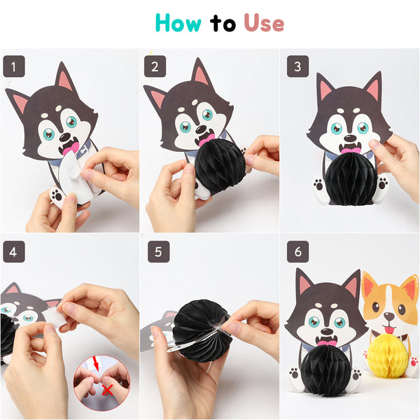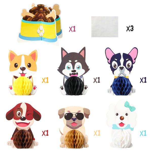 MALLMALL6 7Pack Doggy Themed Centerpiece Table Party Supplies Centerpieces Set Hanging Paper Fans