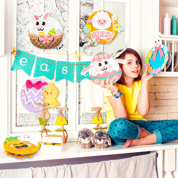 MALLMALL6 9Pcs Easter Paper Plate Art Kits for Kids Educational DIY Craft Early Learning Art Project Parent-Child Preschool Classroom Groups Activities Party Decorations Favors for Boys Girls