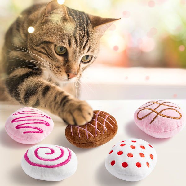 Delicious Chocolate Truffles - Our catnip toys are inspired by chocolate dark truffles. Tempting chocolate black truffle candy shapes are topped with a variety of colourful jams as well as sugar snap peas, allowing you and your pet to share this irresistible and delicious dessert. Not only is the toy filled with soft, cosy cotton that you can feel good about letting your cat play with, but the added organic catnip will keep your cat excited and happy.