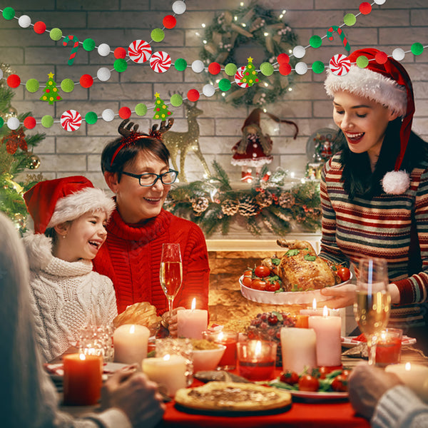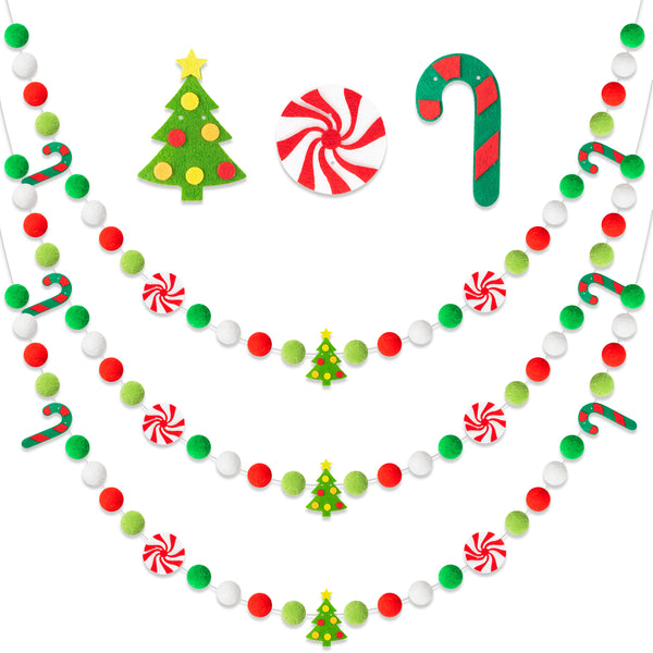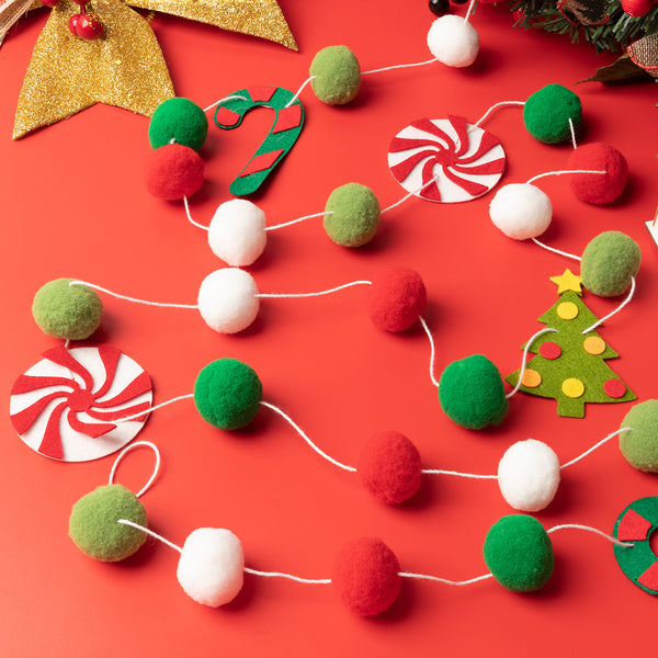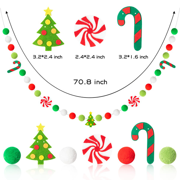 [Xmas Garland] Our Xmas felt ball hanging banner kit is designed with holiday characteristics, such as candy canes, Xmas tree and swirl candy Xmas festival elements. Icing on the cake for your Christmas festival!