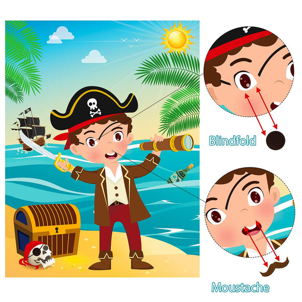 [Funny Party Games] Pin the eye patch and mustache for the pirate, it is the creative party game idea that will make your party full of joy,also an amazing group game for kids to take challenges and bound together to win the prizes.