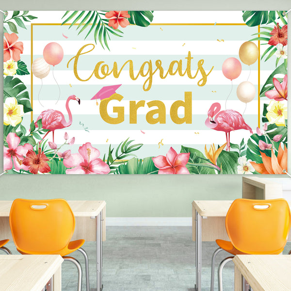 A Flamingo Luau Graduation Party Backdrop